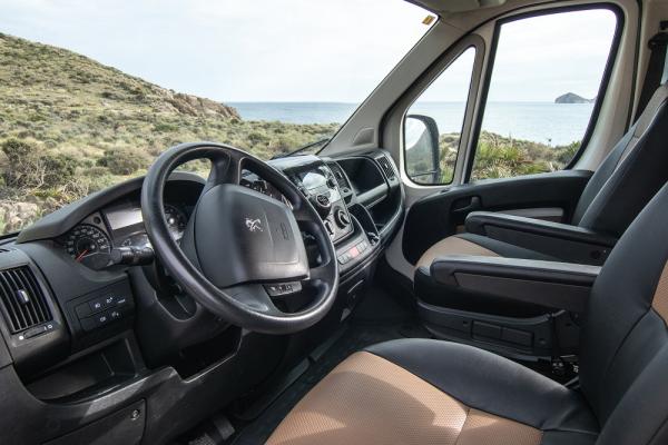 Peugeot Boxer L3 H2 camperizada Gran Volumen, una furgoneta ideal para 4 viajeros con mucho almacenaje y autonomía. Además cuenta con bola de remolque