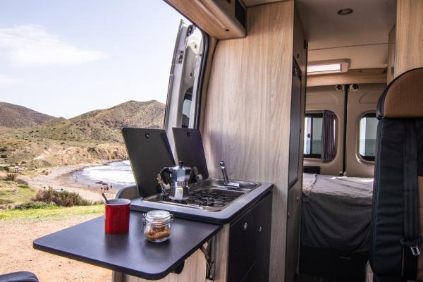 Todas nuestras camper disponen de baño completo interior con agua caliente, placas solares, calefacción estacionaria, nevera con congelador, sillas de camping, mesa interior y exterior, cocina completa, ducha exterior, WC químico, gran capacidad de agua, inversor de 230V, USB de carga